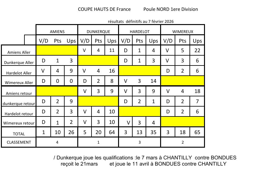 Résultats Coupe des HDF Messieurs 2025-2026